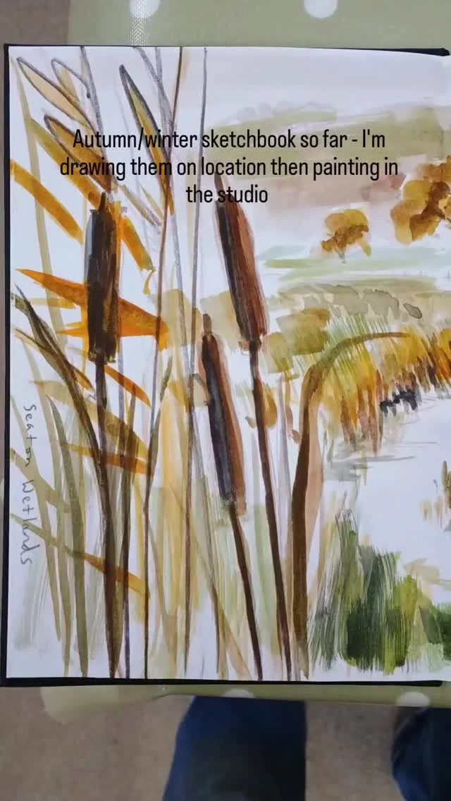 I paint what I see on my wanderings around this beautiful county, there is always a sketchbook in my rucksack and pencils lurking in the depths of my pockets along with pinecones, seeds, pebbles and all the other bits and pieces I collect as I go along.