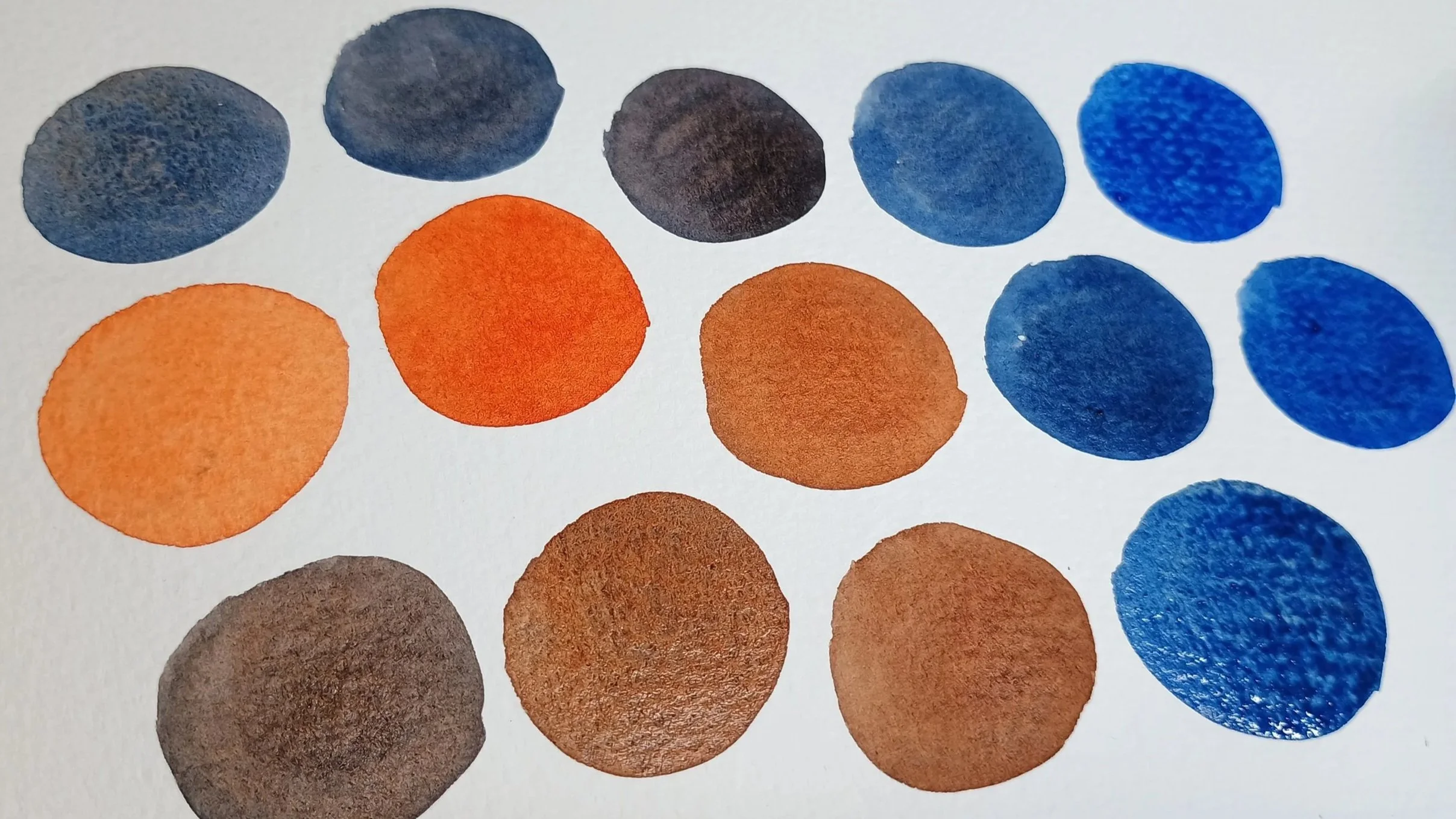Ombre circles, made with transparent pyrrol orange and french ultramarine blue (both Daniel Smith watercolour paints)