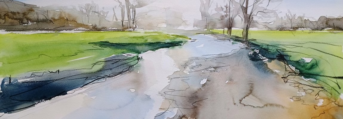 Summer meadow, ink and wash